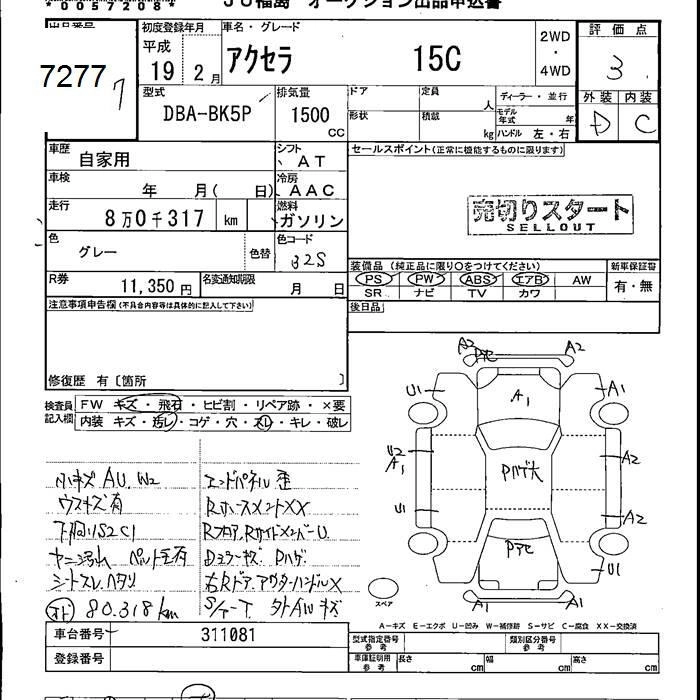 MAZDA AXELA 2007 г., лот № 7277