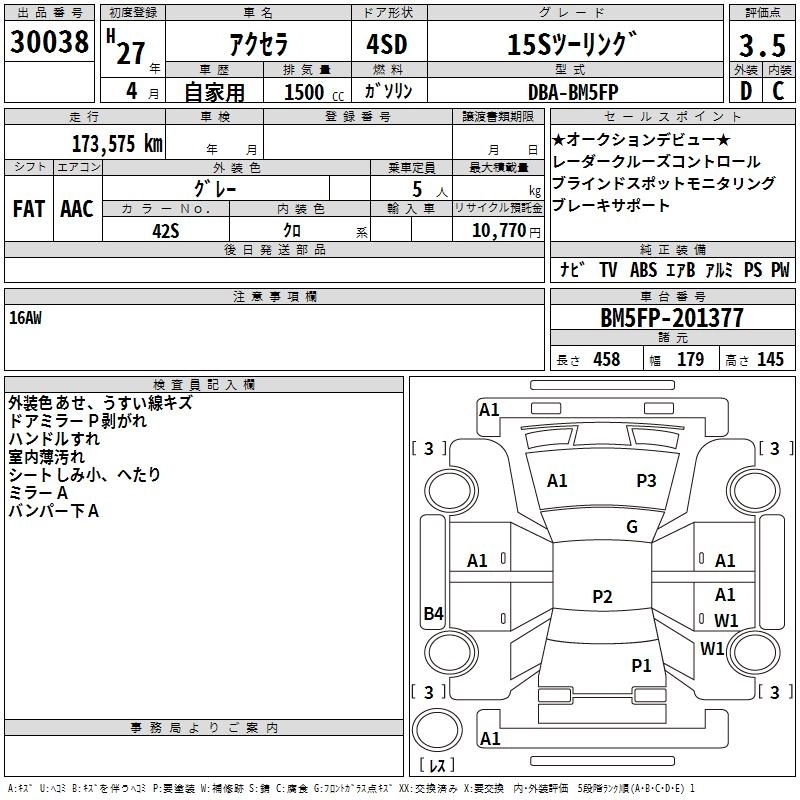 15S TOURING DBA-BM5FP P5-VPS FF 6MT 1496cc 111ps(82kW)/6000rpm AИ-92 2 138 400