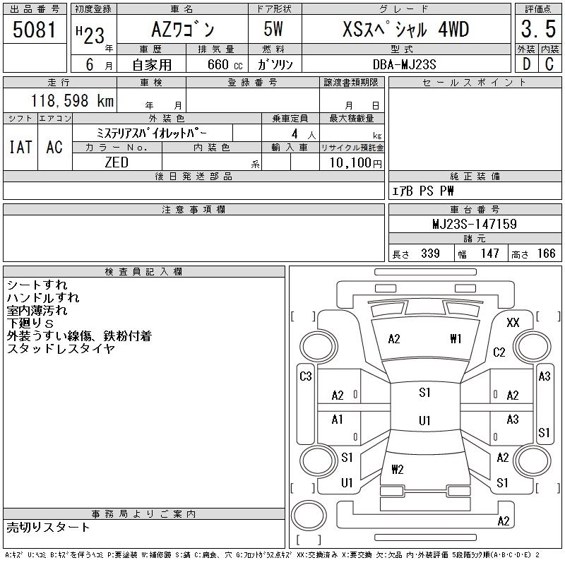 MAZDA AZ WAGON 2011 г., лот № 5081