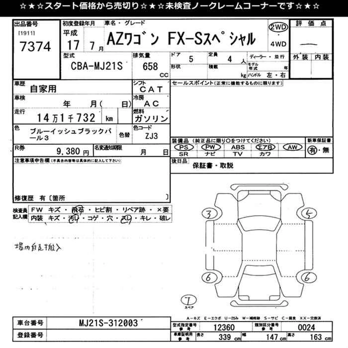 MAZDA AZ WAGON 2005 г., лот № 7374