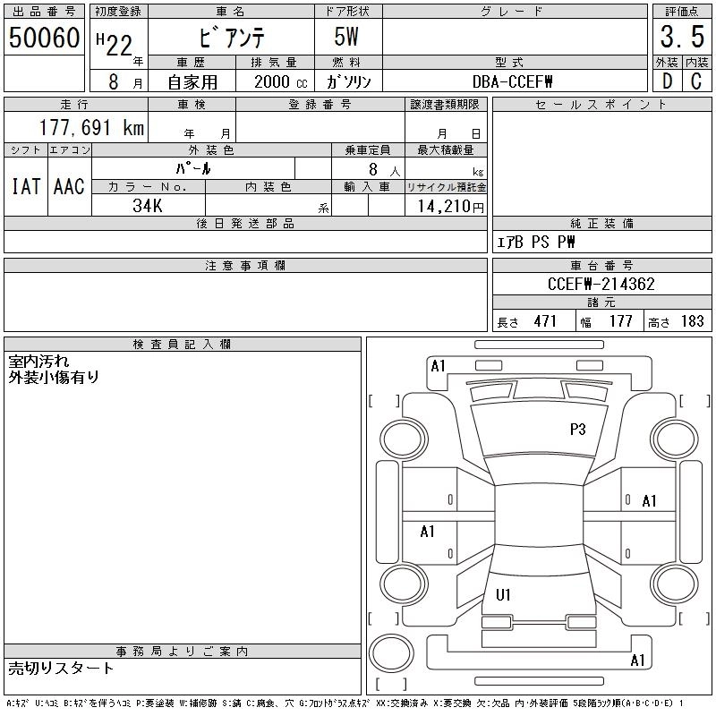 | 23S | DBA-CC3FW | L3-VE | FF | 5AT | 2260cc | 165ps(121kW)/6500rpm | AИ-95 | 2 760 000 | |
