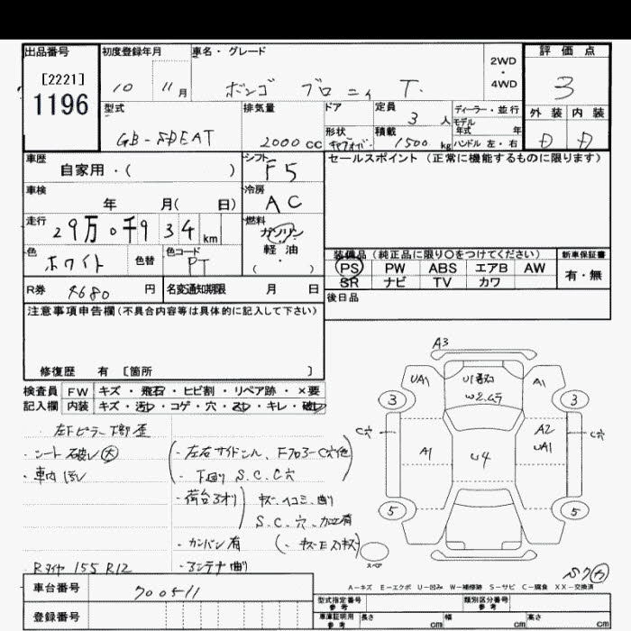 MAZDA BONGO BRAWNY TRUCK 1998 г., лот № 1196