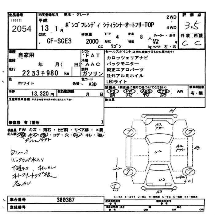 | CITY RUNNERIII | GF-SG5W | J5-D | FR | 4AT | 2494cc | 160ps(118kW)/6000rpm | AИ-92 | 2 418 000 | |