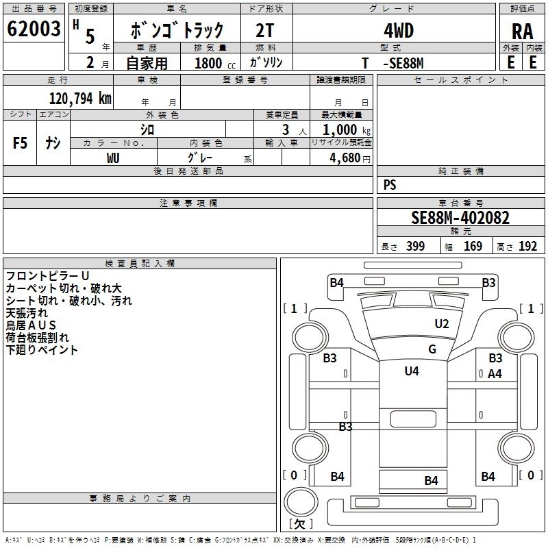 MAZDA BONGO TRUCK 1993 г., лот № 62003