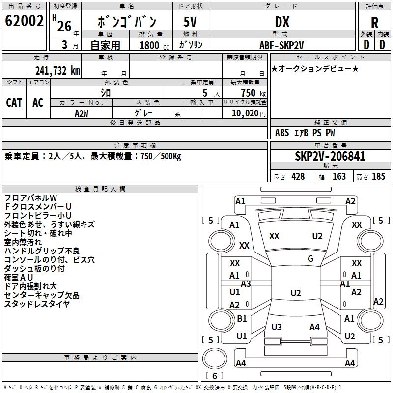 MAZDA BONGO VAN 2014 г., лот № 62002