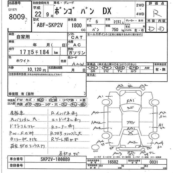 MAZDA BONGO VAN 2010 г., лот № 8009