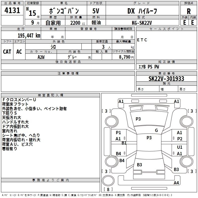Год выпуска2003 Пробег 195 000 км КузовSK22V КомплектацияDX HIGH ROOF