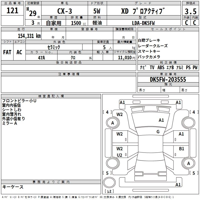| XD L PACKAGE | LDA-DK5AW | S5-DPTS | Full-time 4WD | 6AT | 1498cc | 105ps(77kW)/4000rpm | Дизельное топливо | 3 034 000 | |