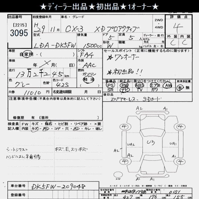| XD L PACKAGE | LDA-DK5AW | S5-DPTS | Full-time 4WD | 6AT | 1498cc | 105ps(77kW)/4000rpm | Дизельное топливо | 3 034 000 | |