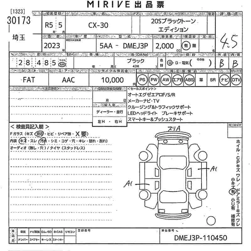 Статус продан Лот 30173 Аукцион MIRIVE Saitama Дата аукциона 25.03.2026