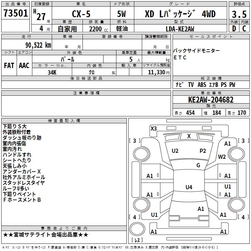 | XD PROACTIVE | LDA-KE2AW | SH-VPTS | Full-time 4WD | 6AT | 2188cc | 175ps(129kW)/4500rpm | Дизельное топливо | 3 164 400 | |