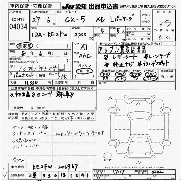 | XD L PACKAGE | LDA-KE2FW | SH-VPTS | FF | 6AT | 2188cc | 175ps(129kW)/4500rpm | Дизельное топливо | 3 261 600 | |