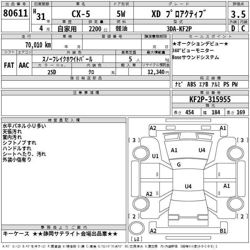 | XD PROACTIVE | 3DA-KF2P | SH-VPTS | Full-time 4WD | 6AT | 2188cc | 190ps(140kW)/4500rpm | Дизельное топливо | 3 404 500 | |