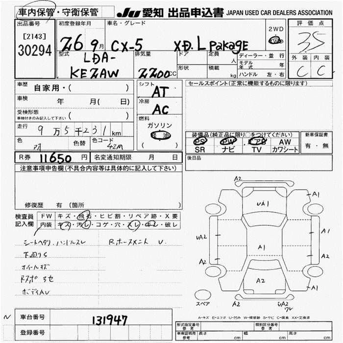 XD L PACKAGE LDA-KE2FW SH-VPTS FF 6AT 2188cc 175ps(129kW)/4500rpm Дизельное топливо 3 067 200