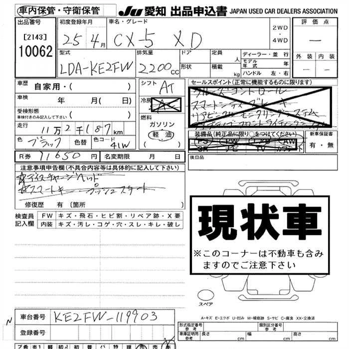 | XD L PACKAGE | LDA-KE2AW | SH-VPTS | Full-time 4WD | 6AT | 2188cc | 175ps(129kW)/4500rpm | Дизельное топливо | 3 192 000 | |
