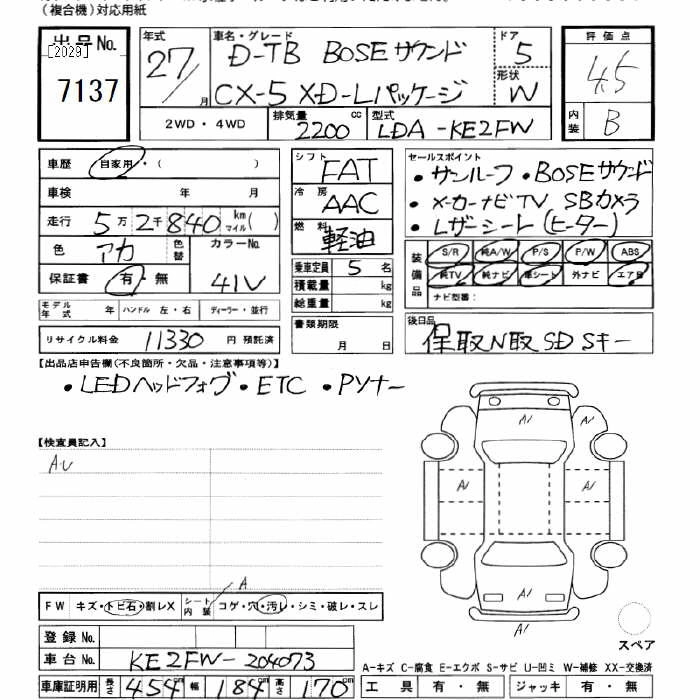 | XD L PACKAGE | LDA-KE2FW | SH-VPTS | FF | 6AT | 2188cc | 175ps(129kW)/4500rpm | Дизельное топливо | 3 261 600 | |