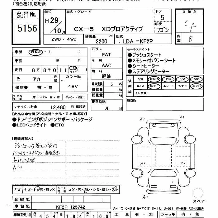 XD PROACTIVE LDA-KF2P SH-VPTS Full-time 4WD 6AT 2188cc 175ps(129kW)/4500rpm Дизельное топливо 3 229 200