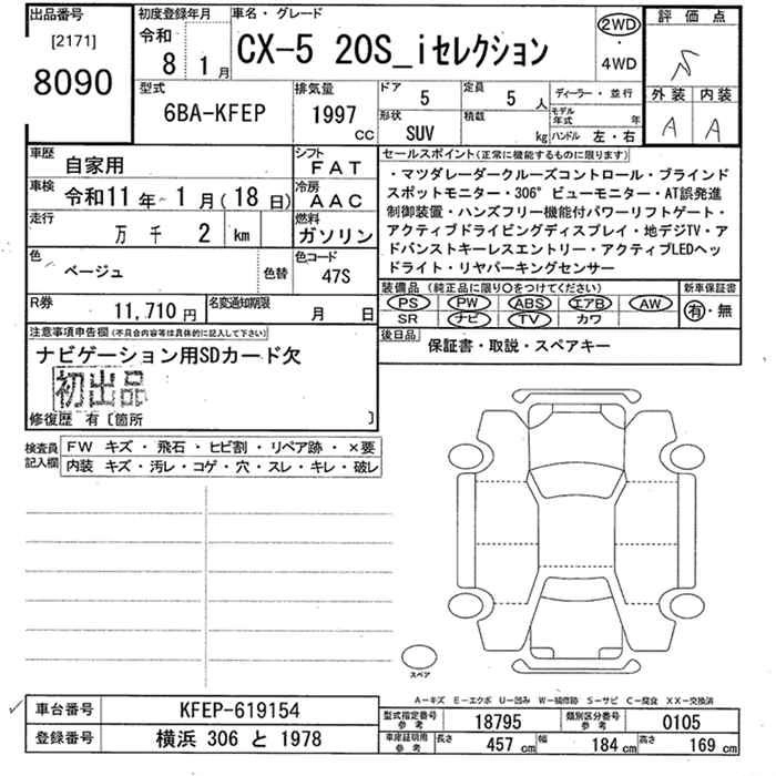 Статус выставлен на аукцион Лот 8090 Аукцион JU Tokyo Дата аукциона 02.02.2026