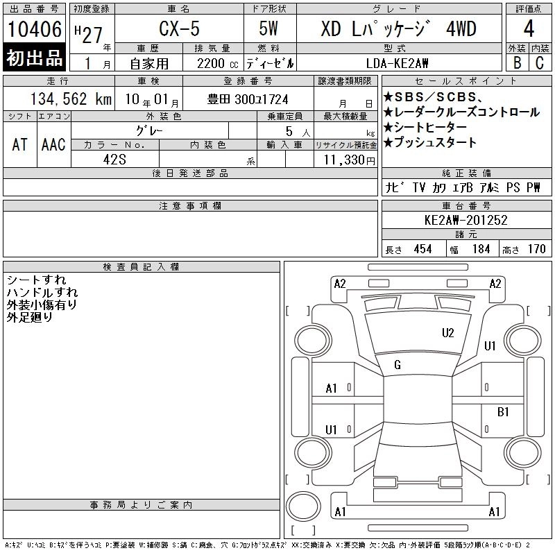 | XD L PACKAGE | LDA-KE2FW | SH-VPTS | FF | 6AT | 2188cc | 175ps(129kW)/4500rpm | Дизельное топливо | 3 261 600 | |