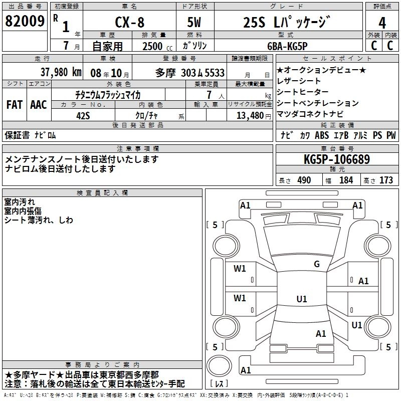 | 25T L PACKAGE | 5BA-KG5P | PY-VPTS | FF | 6AT | 2488cc | 230ps(169kW)/4250rpm | AИ-92 | 4 352 700 | |