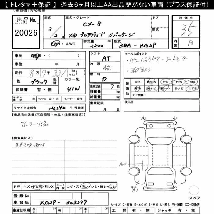 | XD PROACTIVE S PACKAGE | 3DA-KG2P | SH-VPTS | Full-time 4WD | 6AT | 2188cc | 190ps(140kW)/4500rpm | Дизельное топливо | 4 236 100 | |