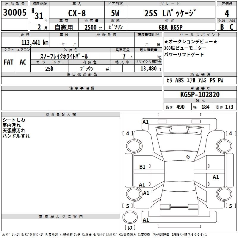 25T L PACKAGE 5BA-KG5P PY-VPTS Full-time 4WD 6AT 2488cc 230ps(169kW)/4250rpm AИ-92 4 323 000