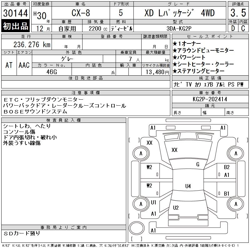 | XD L PACKAGE | 3DA-KG2P | SH-VPTS | Full-time 4WD | 6AT | 2188cc | 190ps(140kW)/4500rpm | Дизельное топливо | 4 460 400 | |