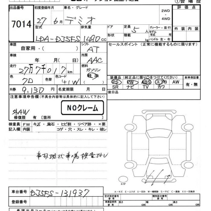 | 13C | DBA-DJ3FS | P3-VPS | FF | 6AT | 1298cc | 92ps(68kW)/6000rpm | AИ-92 | 1 350 000 |