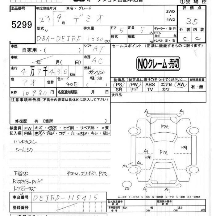 | 13C | DBA-DE3FS | ZJ-VE | FF | 5MT | 1348cc | 91ps(67kW)/6000rpm | AИ-92 | 1 149 000 | |