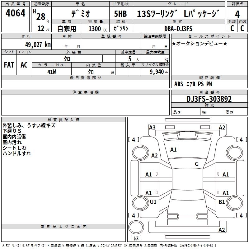 | 13S BLACK LEATHER LIMITED | DBA-DJ3FS | P3-VPS | FF | 5MT | 1298cc | 92ps(68kW)/6000rpm | AИ-92 | 1 771 200 | |