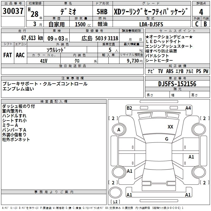 | XD BLACK LEATHER LIMITED | LDA-DJ5FS | S5-DPTS | FF | 6AT | 1498cc | 105ps(77kW)/4000rpm | Дизельное топливо | 2 052 000 | |