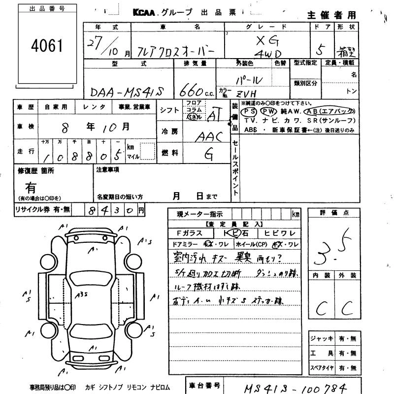 | XG | DAA-MS41S | R06A | Full-time 4WD | CVT | 658cc | 52ps(38kW)/6500rpm | AИ-92 | 1 463 400 | |