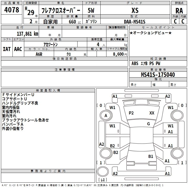 | XS | DAA-MS41S | R06A | Full-time 4WD | CVT | 658cc | 52ps(38kW)/6500rpm | AИ-92 | 1 598 400 | |