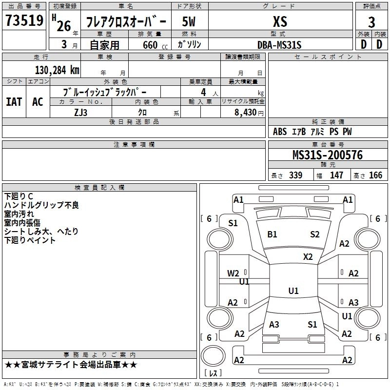 | XS | DBA-MS31S | R06A | FF | CVT | 658cc | 52ps(38kW)/6000rpm | AИ-92 | 1 400 700 | |