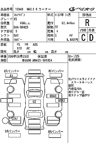 | XS | DAA-MM42S | R06A | FF | CVT | 658cc | 52ps(38kW)/6500rpm | AИ-92 | 1 468 800 | |