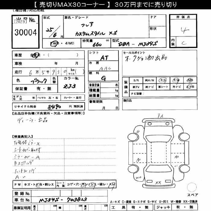 | XG | DBA-MJ34S | R06A | Full-time 4WD | 5MT | 658cc | 52ps(38kW)/6000rpm | AИ-92 | 1 237 950 | |