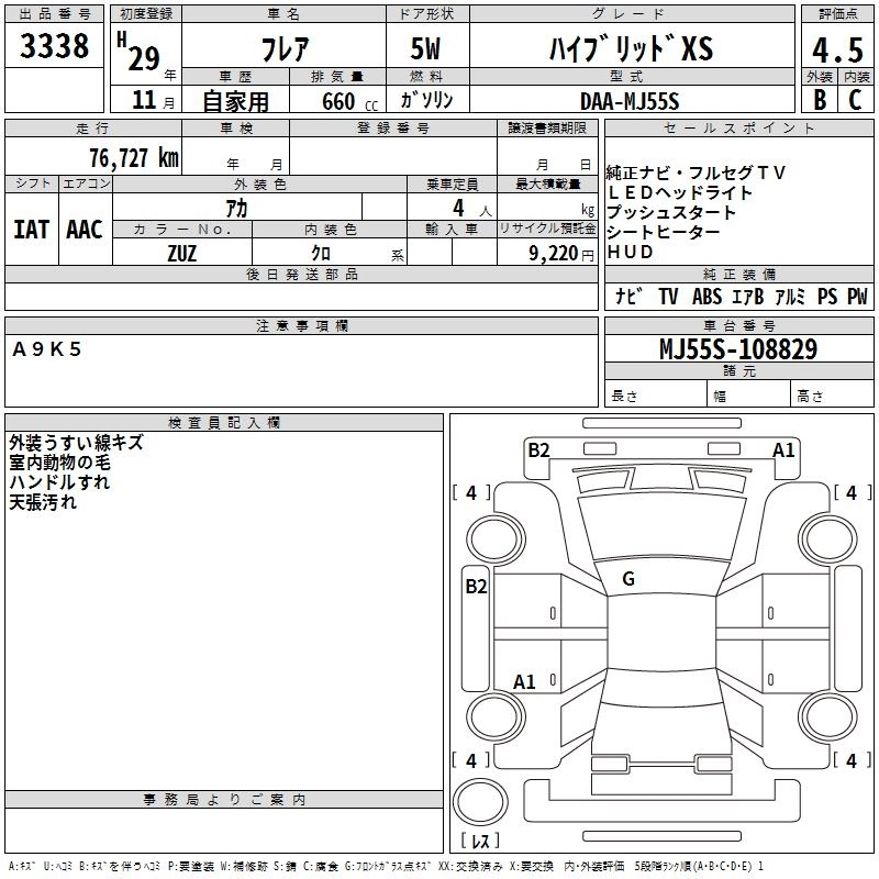 | HYBRID XS | DAA-MJ55S | R06A | FF | CVT | 658cc | 52ps(38kW)/6500rpm | AИ-92 | 1 350 000 | |