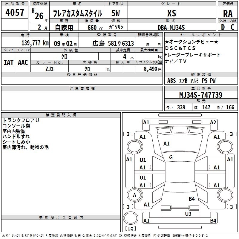 | XG | DBA-MJ34S | R06A | FF | 5MT | 658cc | 52ps(38kW)/6000rpm | AИ-92 | 1 155 600 |