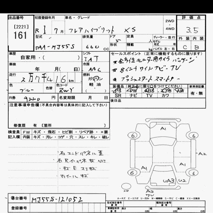 HYBRID XG DAA-MJ55S R06A Full-time 4WD CVT 658cc 52ps(38kW)/6500rpm AИ-92 1 322 200