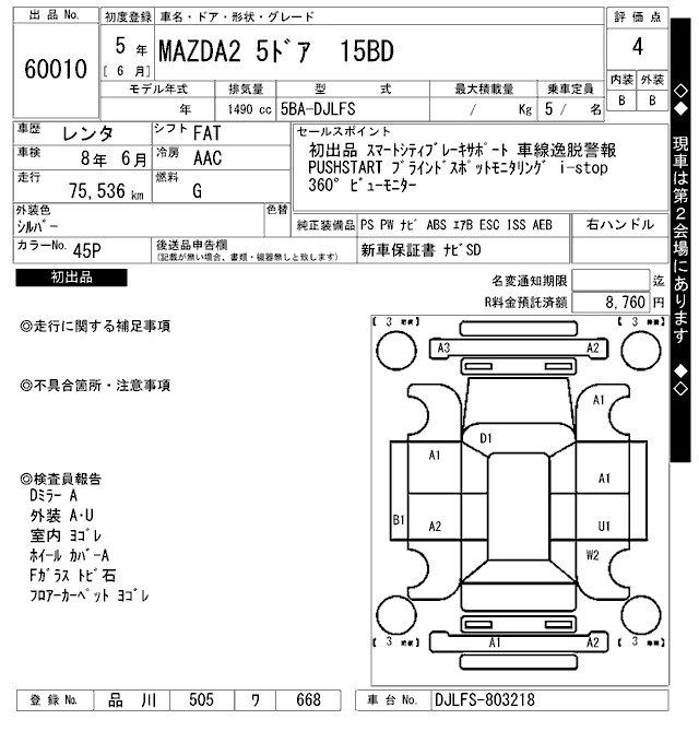 Статус выставлен на аукцион Лот 60010 Аукцион ARAI Bayside Дата аукциона 30.01.2026