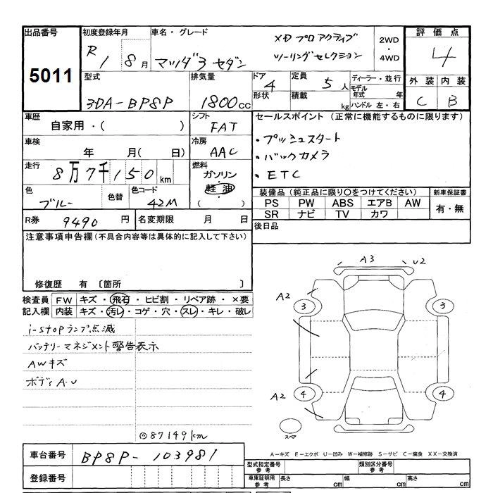 Статус выставлен на аукцион Лот 5011 Аукцион JU Shizuoka Дата аукциона 17.03.2026
