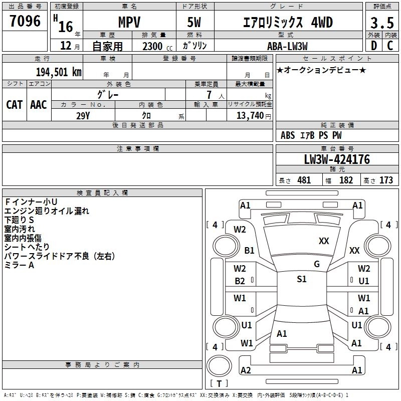 | VS | TA-LWFW | AJ-DE | FF | 5AT | 2967cc | 197ps(145kW)/6300rpm | AИ-92 | 3 160 500 | |