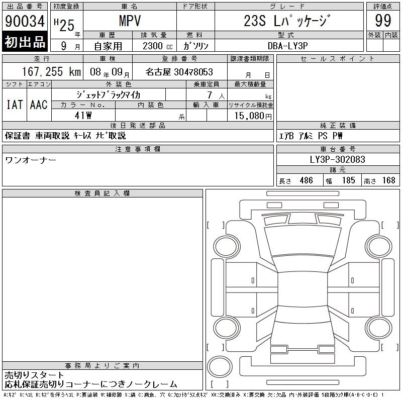 | 23S | DBA-LY3P | L3-VE | FF | 5AT | 2260cc | 163ps(120kW)/6500rpm | AИ-92 | 2 700 000 |