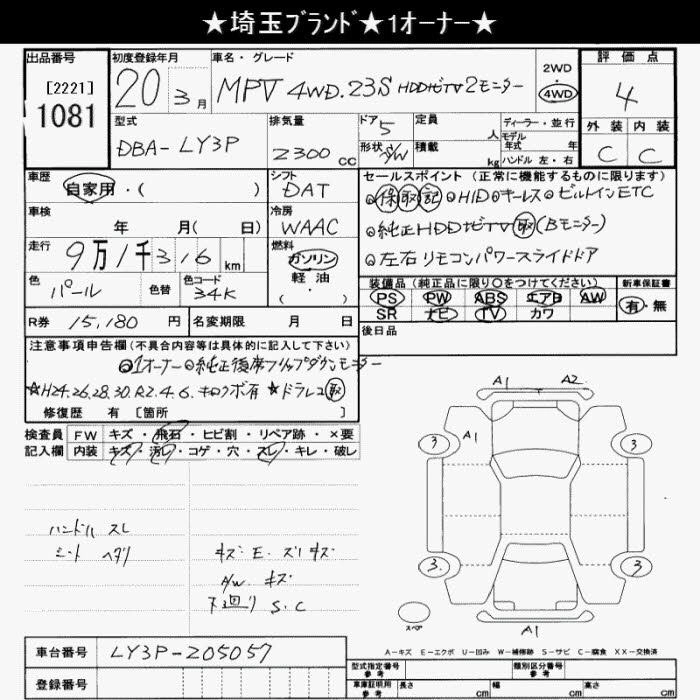 | 23S L PACKAGE | DBA-LY3P | L3-VE | FF | 5AT | 2260cc | 163ps(120kW)/6500rpm | AИ-92 | 3 100 000 | |