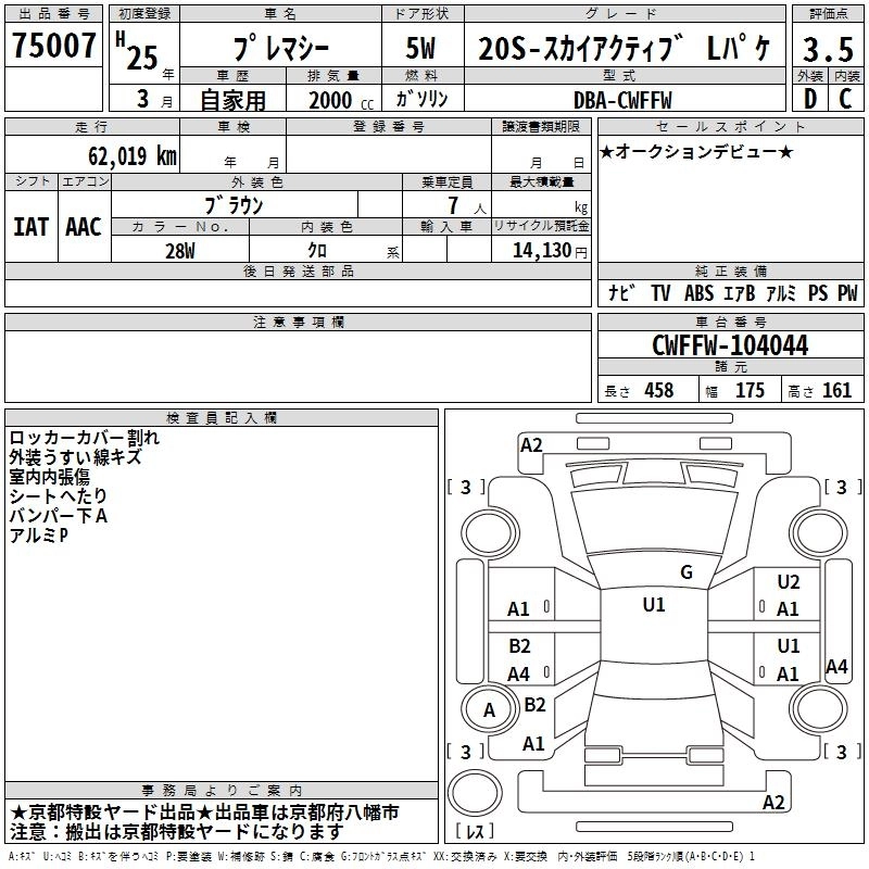 | 20S-SKYACTIV | DBA-CWFFW | PE-VPS | FF | 6AT | 1997cc | 151ps(111kW)/6000rpm | AИ-92 | 2 205 000 | |
