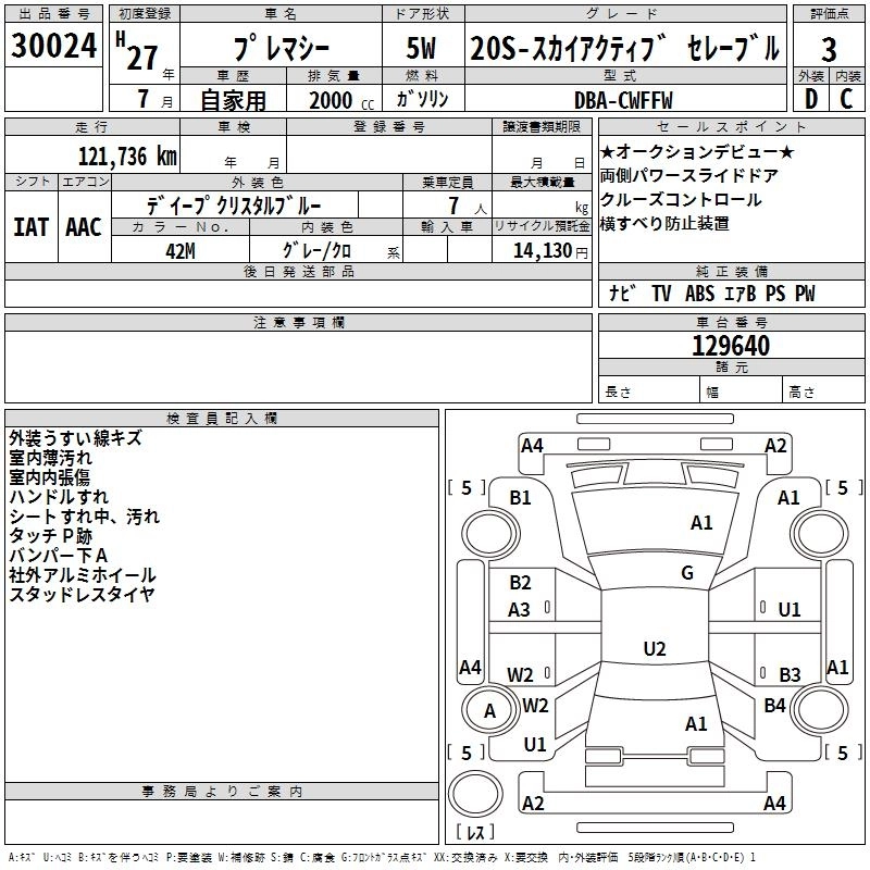 MAZDA PREMACY 2015 г., лот № 30024