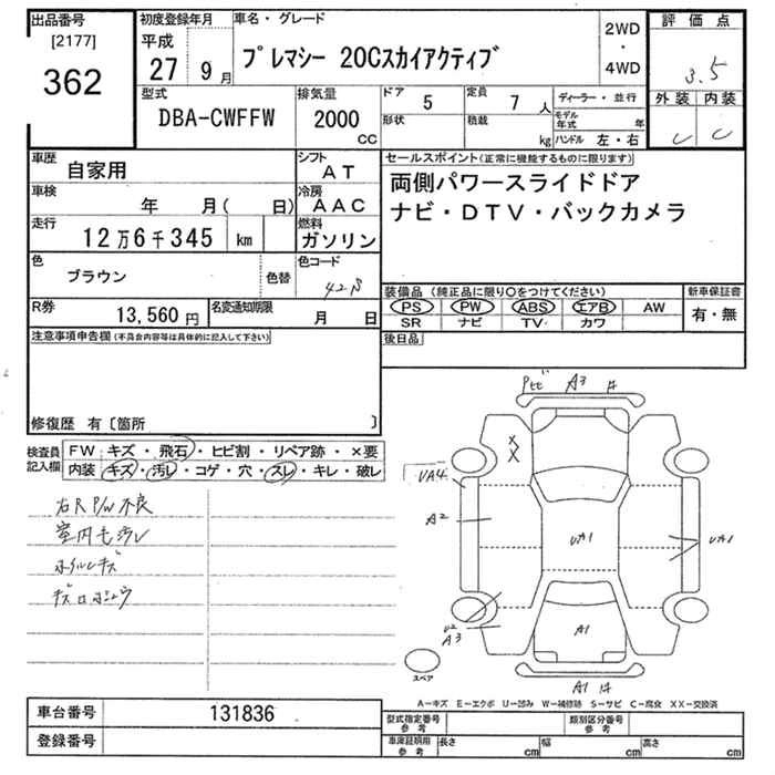 MAZDA PREMACY 2015 г., лот № 362