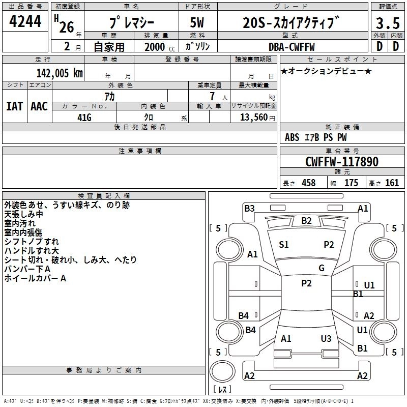 | 20S | DBA-CWEAW | LF-VE | Full-time 4WD | 4AT | 1998cc | 139ps(102kW)/6500rpm | AИ-92 | 2 419 200 | |