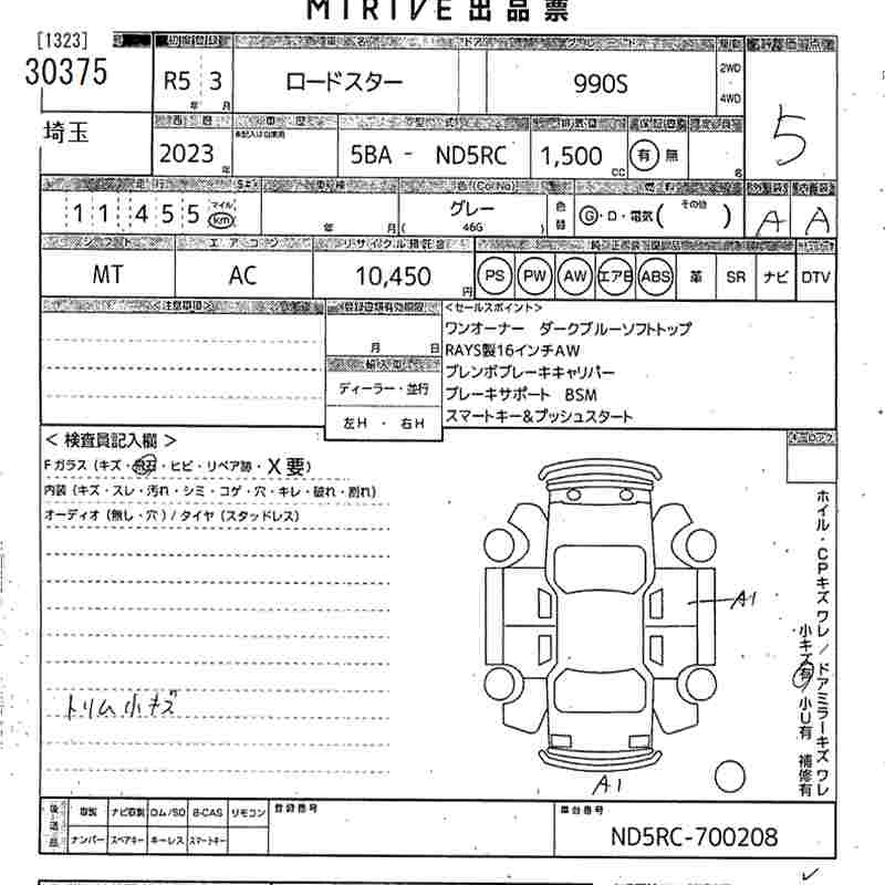 Статус продан Лот 30375 Аукцион MIRIVE Saitama Дата аукциона 25.03.2026