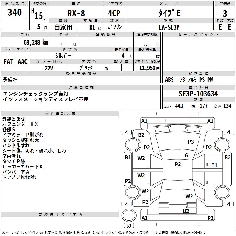 | BASE GRADE | LA-SE3P | 13B-MSP | FR | 4AT | 1308cc | 210ps(154kW)/7200rpm | AИ-95 | 2 400 000 |